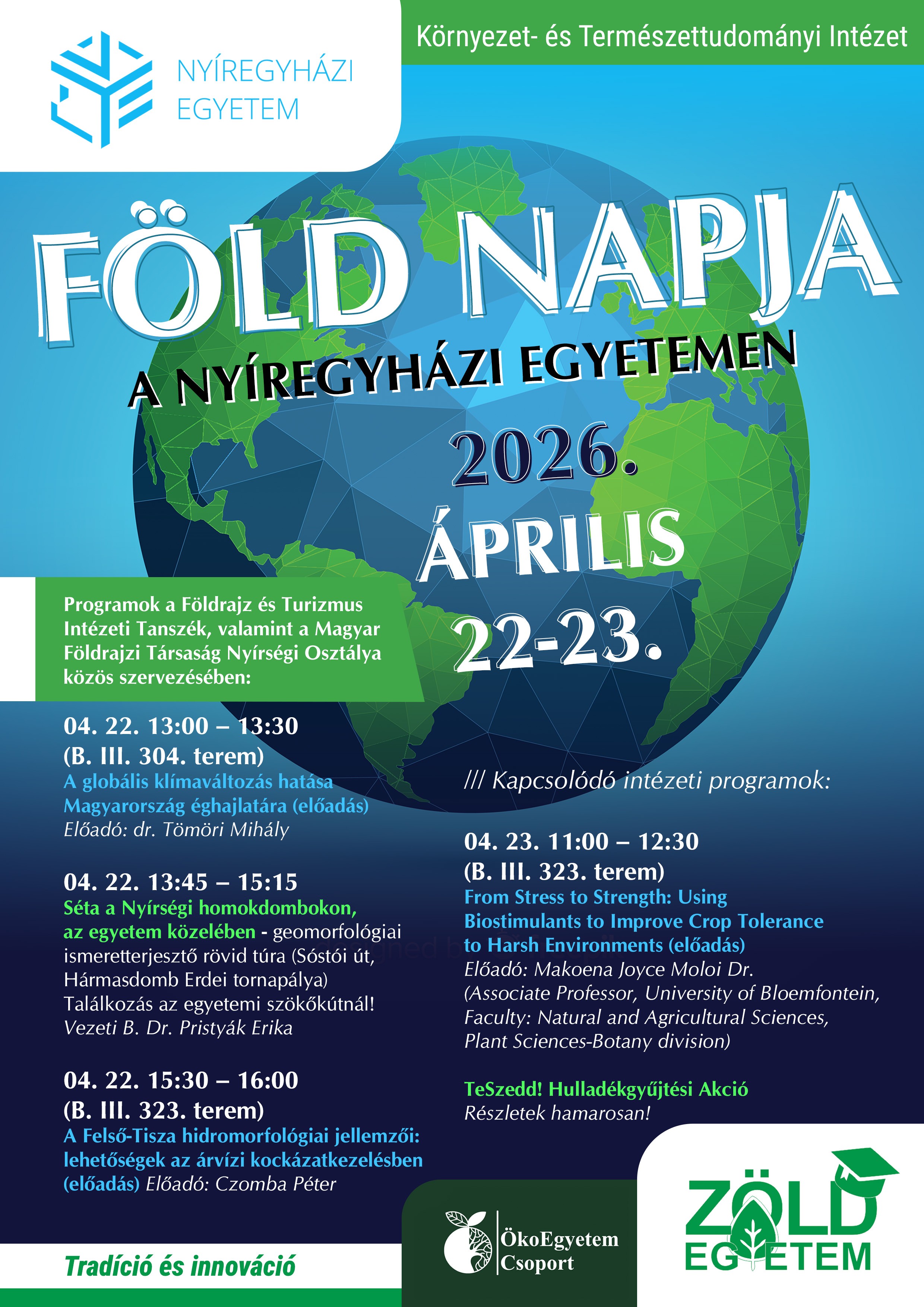 Csatlakozz a Föld Napja alkalmából szervezett programokhoz a Nyíregyházi Egyetemen 2026. április 22–23. között! 🌍
